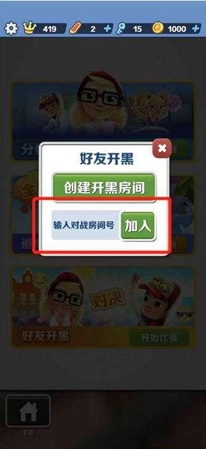 3、跳出弹窗,选择输入对战房间号,进入游戏即可和好友连击。