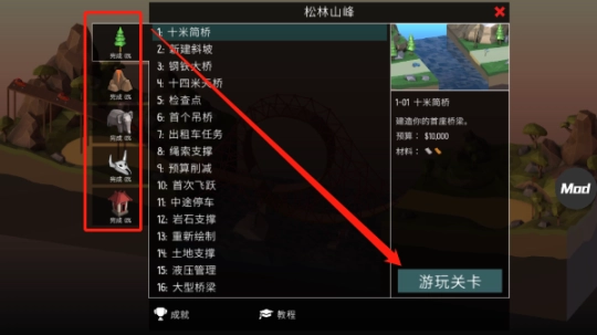 5、此外,在游戏主页能够进入“沙盒”模式,在这里我们可以自行定制搭建各类款式的桥梁与环境。