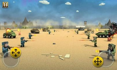2、上帝视角可以看到小兵在一个沙漠的基地里面和别人对打,可以放大缩小界面。