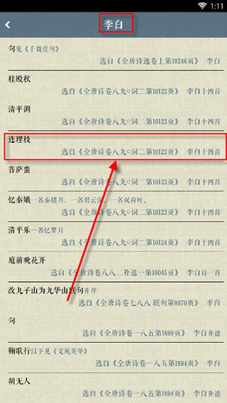 3、以下是李白的诗词,小编以《连理枝》为例,点击即可进入。