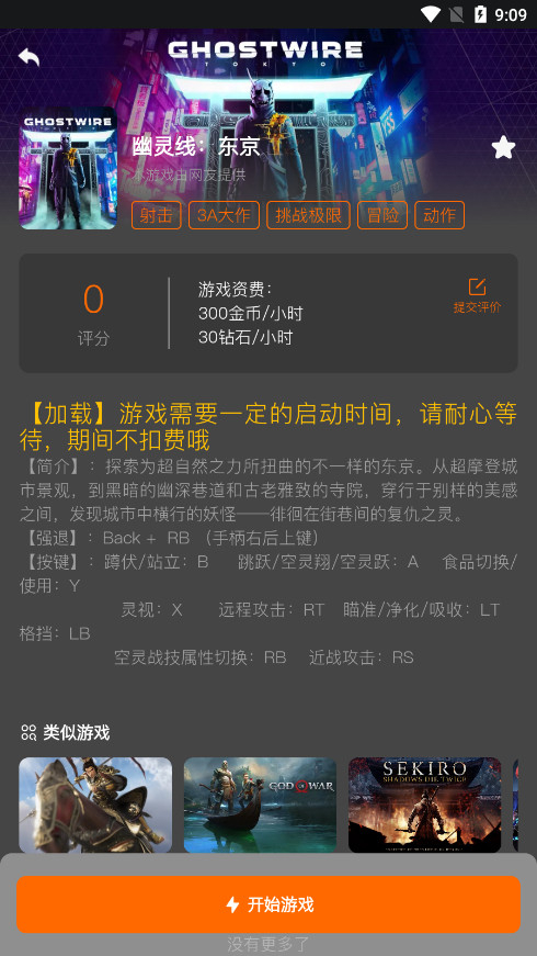 3、在此,小编以《荒野大镖客:救赎2》为例,点击进入后,能看到游戏的剧情介绍,还有所需的游戏资费标注,点击下方“开始游戏”即可进入。