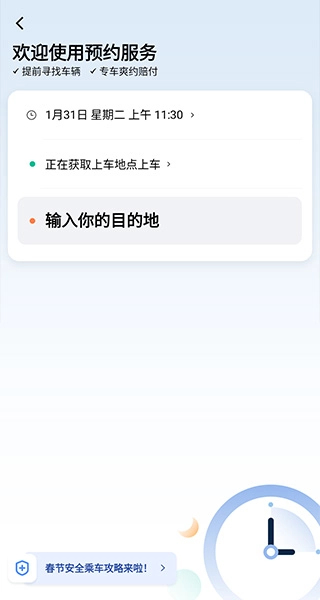 1、一键叫车:画面简要,精准定位,一键叫车,轻松出发。