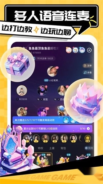 1这是一个集游戏陪玩、语音社交与技能分享为一身的综合性平台,能够满足玩家在上分、交友、娱乐等方面的多样化需求。
