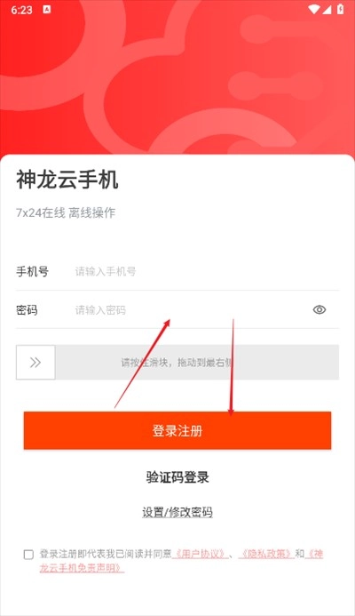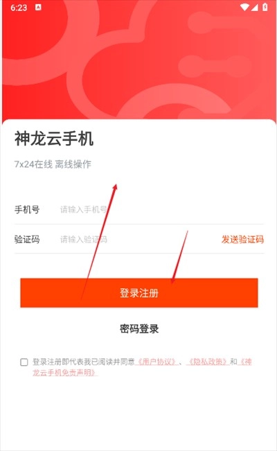 1、打开神龙云手机,点击同意然后继续