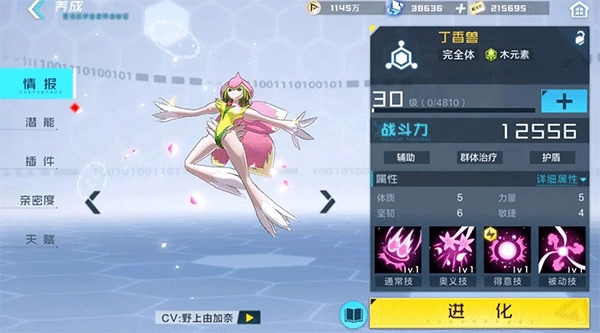 在数码兽潜能界面,可用潜能果实提升数码兽的四维属性。潜能果实主要通过扫荡果实守卫(网域主线)、神秘商店获取。