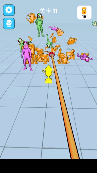 2.玩家只需点击屏幕,操控角色挥动拳头,将关卡中的NPC全部击倒即可通关。