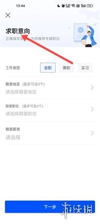 1在求职意向页面,您能够挑选全职、兼职、实习等工作类型,同时最多勾选三个期望的地区与职位。不仅如此,您还能够设定薪资范围。精确填写这些信息后,系统便会为您推送专属匹配的岗位。