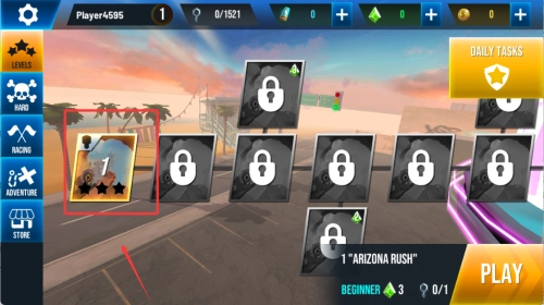 1、进入关卡选择界面,浏览不同难度与主题的赛道场景,选定挑战目标。
