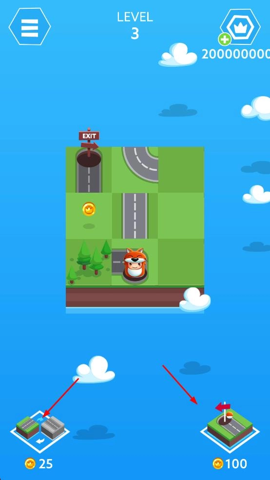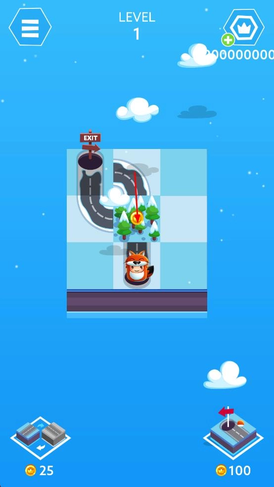 3、调整模块布局,确保路径通顺,引导狐狸沿道路移动至出口,完成关卡。