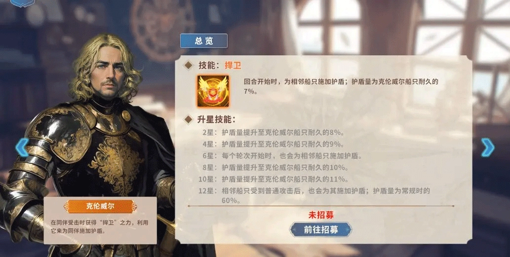 需要注意的是,【雷利】是给“防御”最高的船长加盾,【克伦威尔】是给左右加盾,所以记得将攻船和防船放耐久船的左右两侧