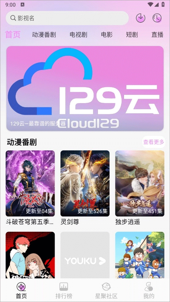 1、打开首页,能看到丰富多样的影视内容,涵盖番剧、电视剧以及电影短剧等各类剧集。