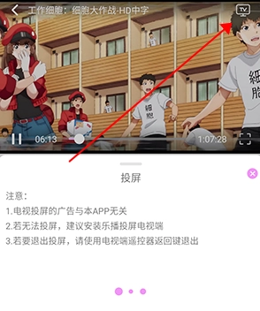 4、点击播放页面右上角的TV图标,即可开始搜索附近的投屏设备。