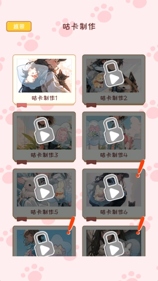 1. 为玩家供应多种形状与材质的咕卡底板,玩家能够在底板上绘制图案,并添加闪粉等装饰,从而制作出独具特色的咕卡。