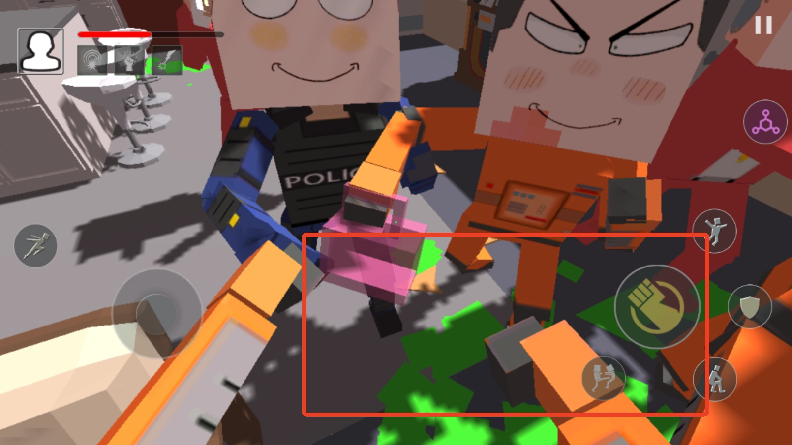 《血染小镇》手机版是一款第一人称视角的动作对战手游。在游戏里,你将化身为方块人,与其他角色展开对战。刚进入游戏时,你手中并无武器,但可以向其他NPC挥拳发起攻击。一旦你攻击了某个NPC,其他NPC便会将你围住,或是向你进攻,或是相互间发生互殴。这时,你得迅速在场景中寻找各类可利用的道具,像木棍、刀子、木板等,任何能够拾取的物品都能成为称手的武器!