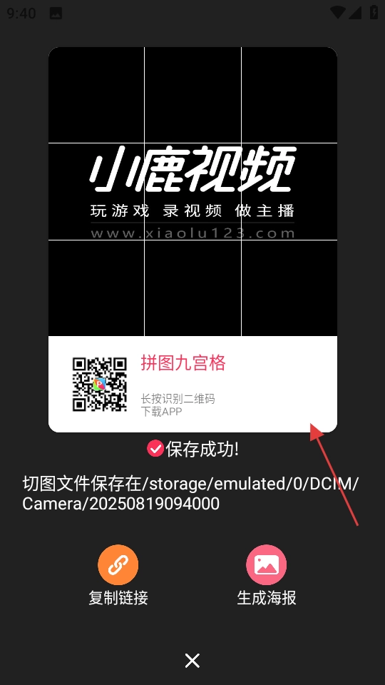 3、图片切割完成后,会提示保存成功,也能点击生成海报,将切割好的图片制作成海报,方便在不同场景使用。