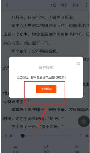 3、弹出窗口后,点击开始缓存即可下载小说