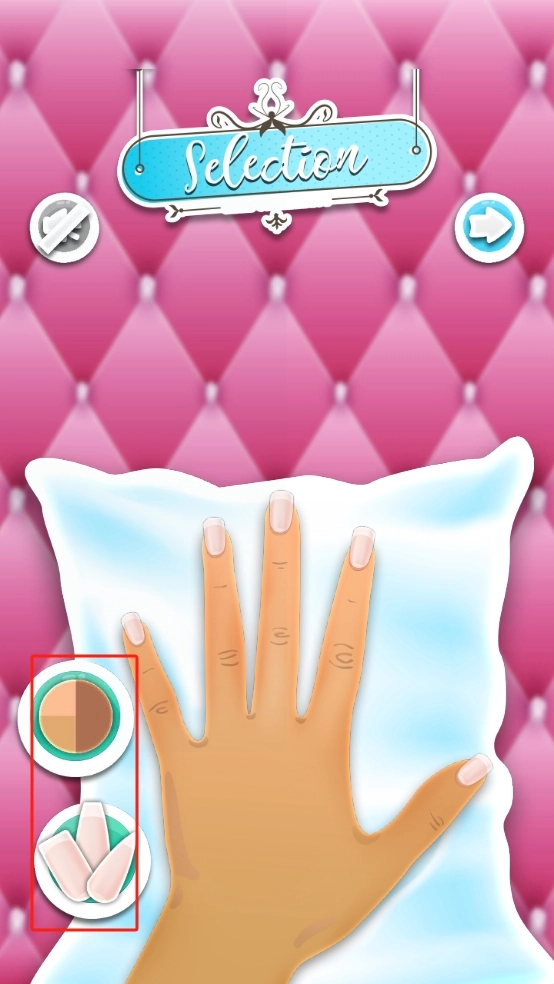 1、在选择界面,先从左侧选好美甲相关的底色、甲片等基础物品,搭配出心仪的美甲初步样式,为后续步骤做准备。