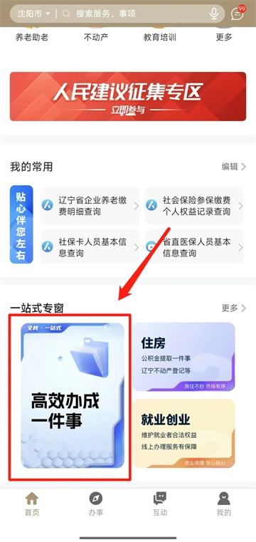 1. 打开“辽事通APP”,向下滑动页面,找到“高效办成一件事”,然后点击进入。
