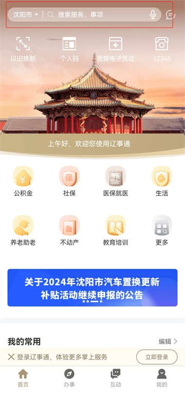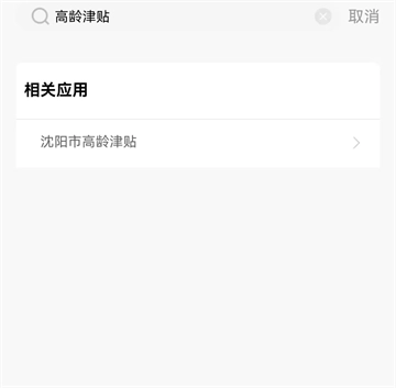 打开“辽事通”APP,在其主页通过搜索框查找“沈阳市高龄津贴”。