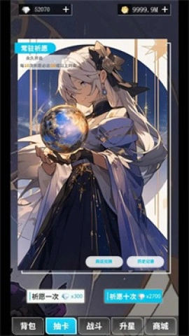3、在抽卡界面进行祈愿,每10次必定获得SR及以上卡牌。