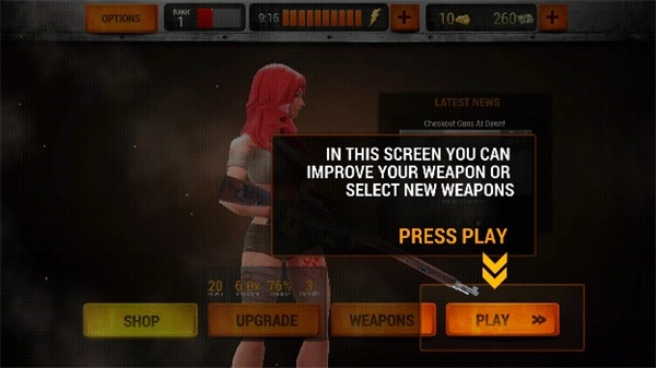 1、下载安装好僵尸猎人死亡之战最新版游戏之后,点击界面中的PLAY进入游戏;