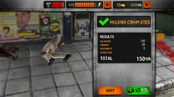 4、当游戏结束后会进入结算阶段,如果玩家爆头射杀僵尸,将会得到更多的金钱;