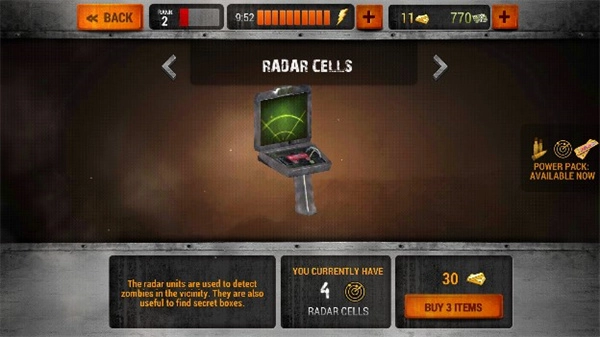 7、除了武器之外,还会有一些辅助道具供玩家购买,比如僵尸探测器等等,这些都需要金钱才能购买,所以玩家一定要尽可能的多赚一些钱。