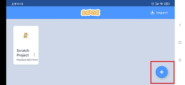1、进入scratch软件后,点击主界面中的【导入】。