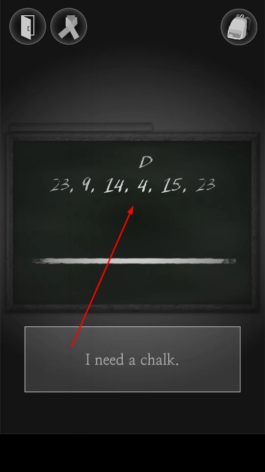 2、留意黑板上的数字23, 9, 14, 4, 15, 23 ,按照字母表顺序,以A = 1的规则进行换算,得到W, I, N, D, O, W 。再结合下方“ I need a chalk ”的提示,去寻找与粉笔道具相关的谜题。