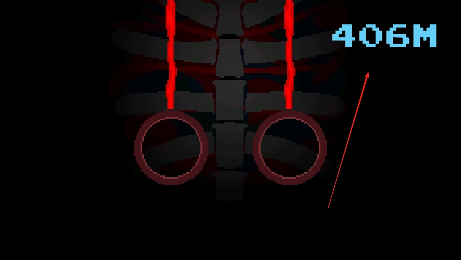 3、注意观察右上角,每少一百米,小球落下的速度就会快一点,一旦错过小球游戏就会失败。