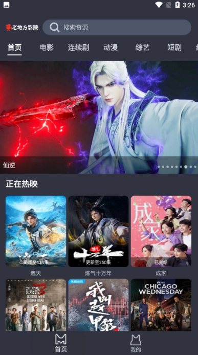 1. 点开老地方影院App,进入应用的首页,便能瞧见电影、连续剧、动漫等分类。