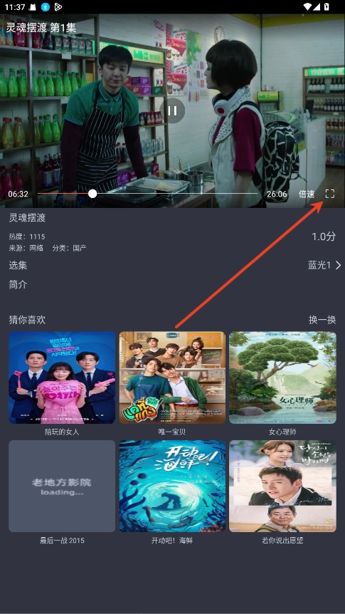 4. 轻点播放界面右下角的放大按钮,就能开启大屏追剧模式。