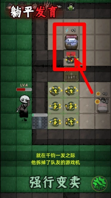 1.拆除提示:游戏机建筑,红字“拆除”高亮显示,拆除将削弱资源与增益,建议及时取消并加固周边防御。