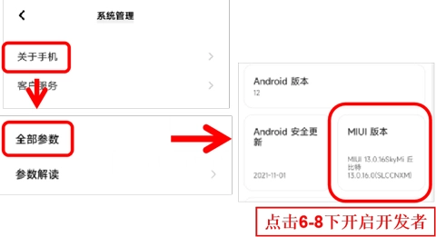 手机【设置】-【关于手机】-连续点击【版本号】6-8下,直至手机提示【已开启开发者模式】