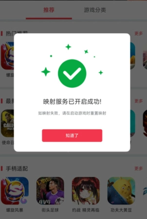 ⑤ 激活成功会自动返回小鸡游戏世界APP并提示映射成功即可畅玩