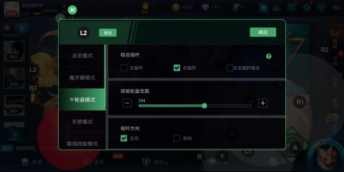 5、轮盘模式:适合MOBA类游戏。按下该按键,同时旋转手柄摇杆,即可控制技能方向。