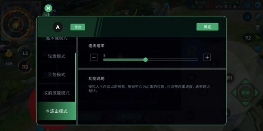 按钮图标中心为点击位置,可通过拖动进度条调整连击速度,该模式一般用于《王者荣耀》的普攻按键;