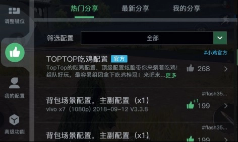四、推荐配置:热门分享、官方配置、最新分享、我的分享配置