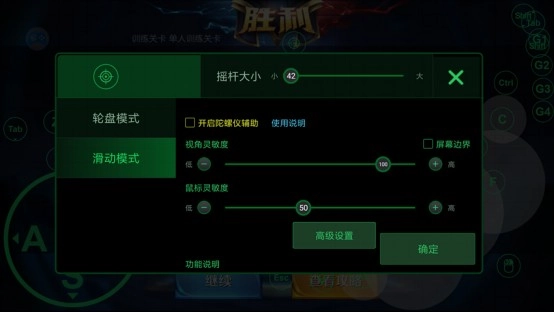 滑动模式: 适用于游戏人物视角的移动与开火的瞄准