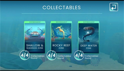 3、游戏设置了多种不同的环境,像浅水区、海草区、岩礁区以及深水区,各个环境独具特色。
