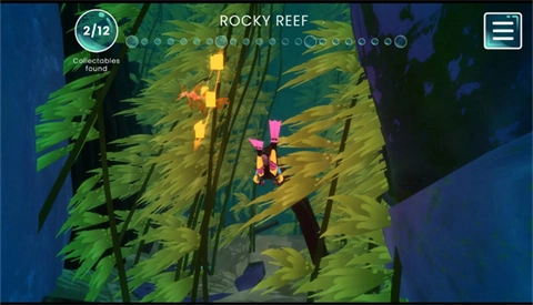 2、操控角色十分轻松,你能够持续游泳,而且还有大量收藏品等待你去探索发现,千万别忘记哦。