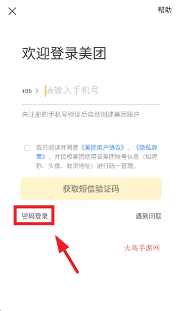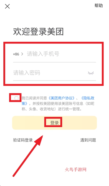 请输入手机号与密码,同时勾选“我已阅读并同意《美团用户协议》及《隐私政策》”,且授权美团对该美团账号信息(例如昵称、头像、收货地址)进行统一管理,完成上述操作后点击“登录”即可。
