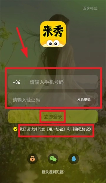 1、在本站下载安装来秀app并打开,先同意用户协议和隐私政策