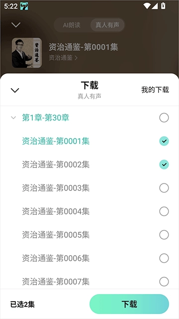 2. 在弹出的选集中,勾选你想下载的集数,勾选完毕后,点击“下载”按钮即可。