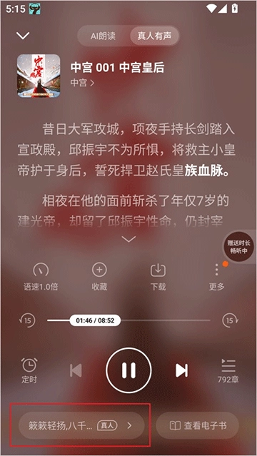 1. 开启app,寻觅到想聆听的书籍,点击进入播放界面。