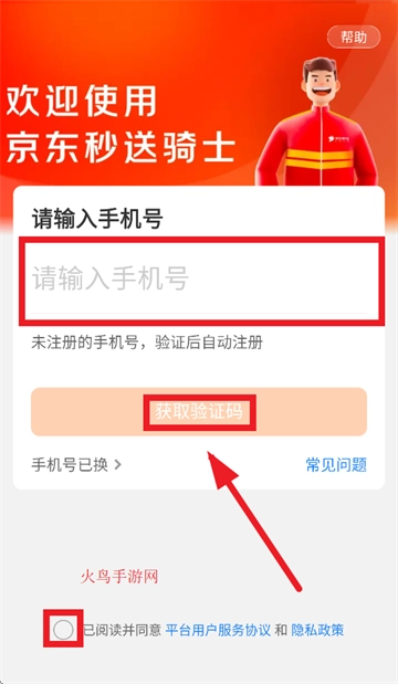 当您进入登录界面后,在相应位置输入手机号码,同时勾选“已阅读并同意平台用户服务协议和隐私政策”选项,随后点击“获取验证码”按钮。