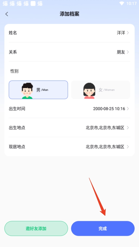 2. 在关系选项中,选取【朋友】,接着点击【完成】。