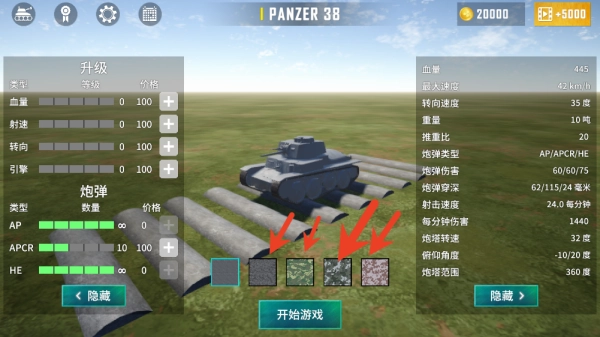 3、选定坦克并查看其属性后,点击“开始游戏”投入战斗,并熟悉操作指引。