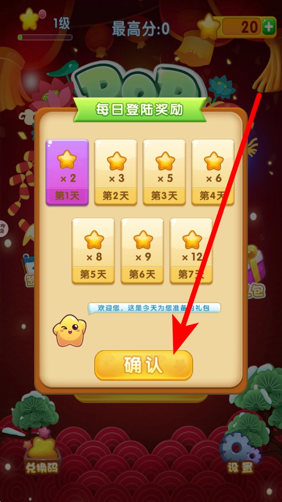 1. 领取登录奖励:进入游戏后,首先映入眼帘的是每日登录奖励界面,点击界面下方的确认按钮,即可领取当日福利。累计登录天数越多,所获得的星星数量就越为丰厚,这些星星可为后续游戏玩法储备资源。