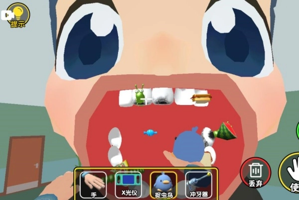 3、这里可以使用捉虫鸟来吃掉牙齿上面的蛀虫,然后再去进行后续新的治疗。